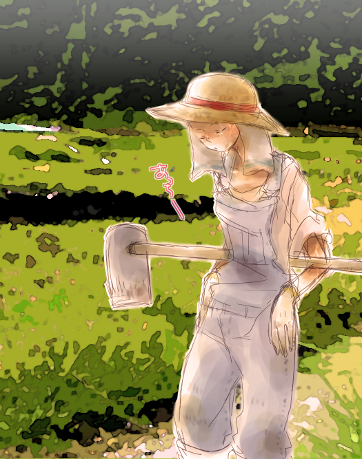 でもタオルを噛ませた麦わら帽子とオーバーオールが描きたかったの!