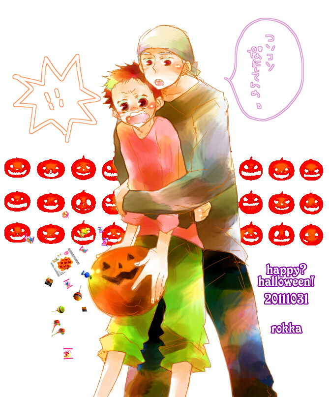 後ろから抱き締めた少年の体をそっと手放すと、すぐにしゃがみこみ脇にカボチャを置いて飴だとかチョコレートだとか、小さなお菓子を無言で拾い始めた。